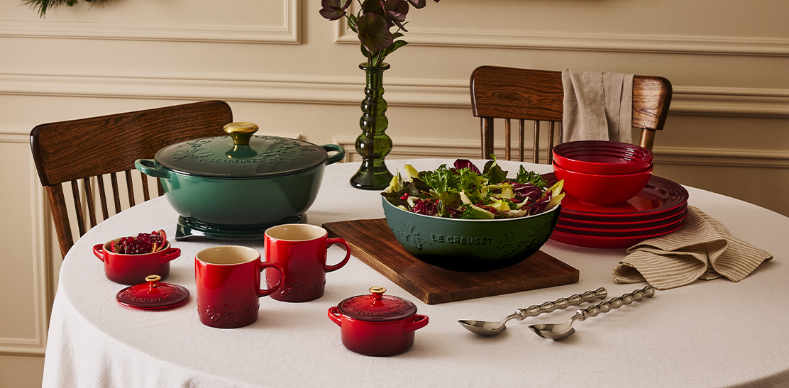 Introducing the Holly Collection, now available in our most loved seasonal pieces: the Mini Cocottes, Multi Bowl, Mug, and Soup Pot. Each piece features a delicate embossed holly design, perfect for cooking, serving, or gifting this holiday season. Celebrate in festive colours Cerise, Cotton, and Artichaut and add a seasonal touch to your kitchen while creating memorable holiday meals.