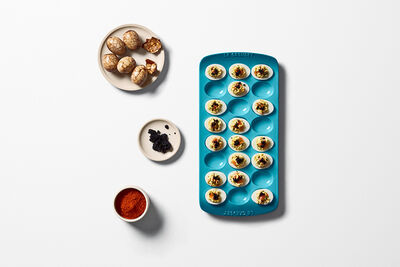 Crafted from high-quality ceramic material, this Egg Tray features six compartments perfect for serving snacks and appetizers, or for holding eggs (cooked or not).