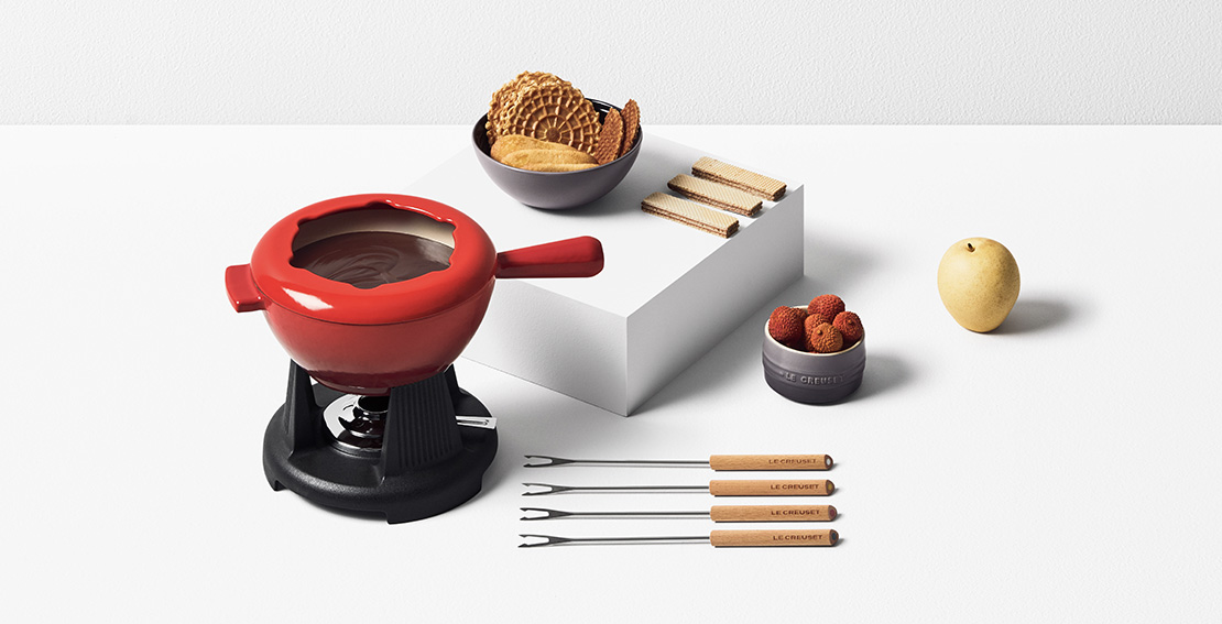 The cast iron fondue set is crafted from the ideal material for even heat distribution, helping ingredients melt smoothly and consistently. Finished with a vibrant enamel exterior, it adds colour and elegance to the table, while its distinctive, user-friendly design makes serving easy. An extended handle allows for comfortable and secure carrying from kitchen to table.