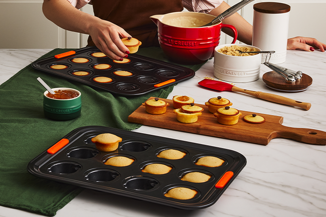 Preheat the oven to 350°F (175°C). Lightly oil the two Round Dutch Oven Cakelet Pan cavities with butter. Use a Basting Brush to ensure all crevices are evenly coated.