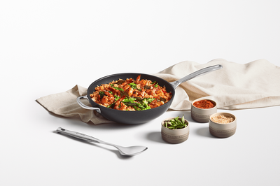 The Rice Pot comes equipped with built-in steam vents to prevent boil-overs, offering the ideal piece of cookware for preparing rice and grain dishes of all sizes. Featuring curved sides, this versatile piece of cookware has been carefully crafted to promote convection and even moisture circulation. It even comes with ergonomic tab handles, ensuring you can transfer it from the stovetop directly to the table in style.