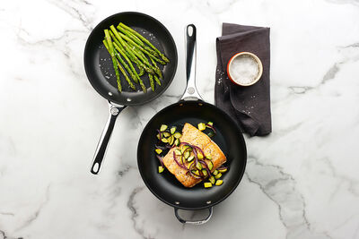 The Toughened Nonstick Pro Fry Pan is perfectly suited for recipes with sensitive ingredients that typically stick. Ideal for flipping pancakes or frittatas, this piece of cookware can help you step up your cooking game in no time. The Toughened Nonstick Pro Fry Pan is available in five sizes, including 20 cm, 24 cm, 26 cm, 28 cm, and 30 cm, accommodating recipes of all sorts.