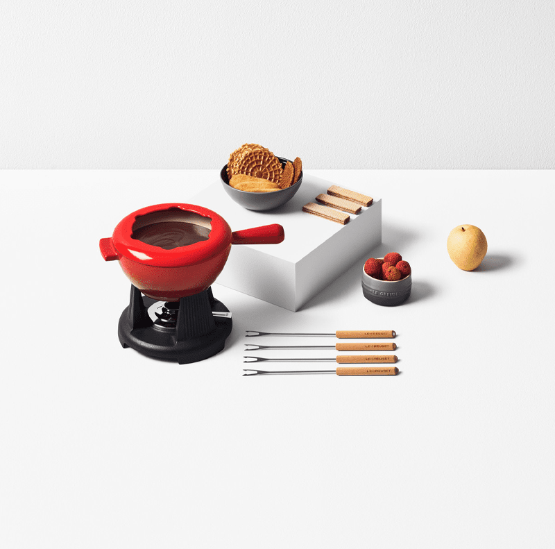 Tirant son nom du mot français « fondre », cet ensemble peut aider à préparer de nombreux plats délicieux, des plats principaux aux desserts. L'ensemble à fondue Le Creuset inclut six fourchettes à code couleur spécialement conçues pour tremper du pain et des fruits dans votre fondue au chocolat, au fromage ou même à l'huile.
