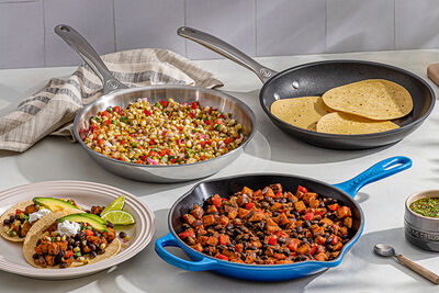 Vous cherchez une recette faite mesure pour cet ensemble? Essayez notre Tacos de patates douces et de haricots noirs avec salsa de maïs rôti